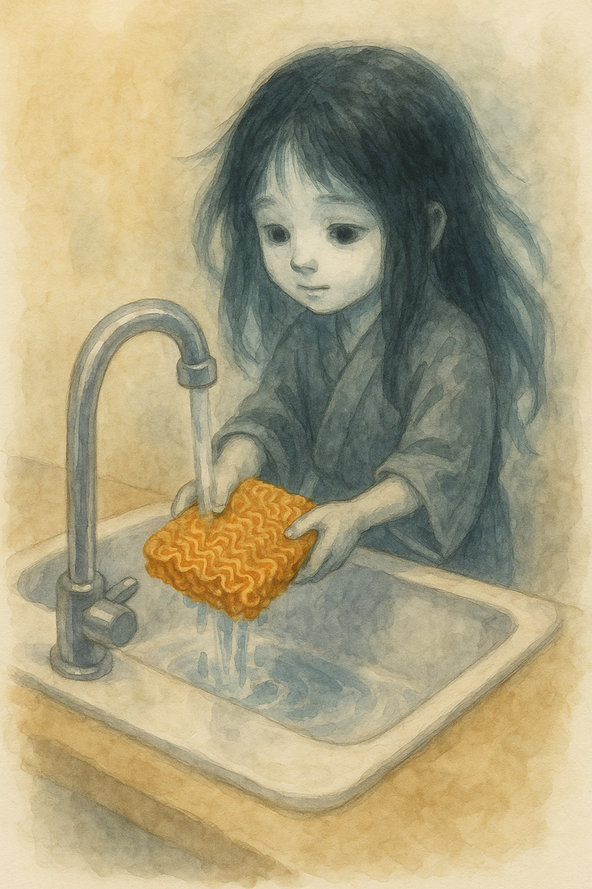 茹でる前に流水で麺をザーッと洗う(1分位)