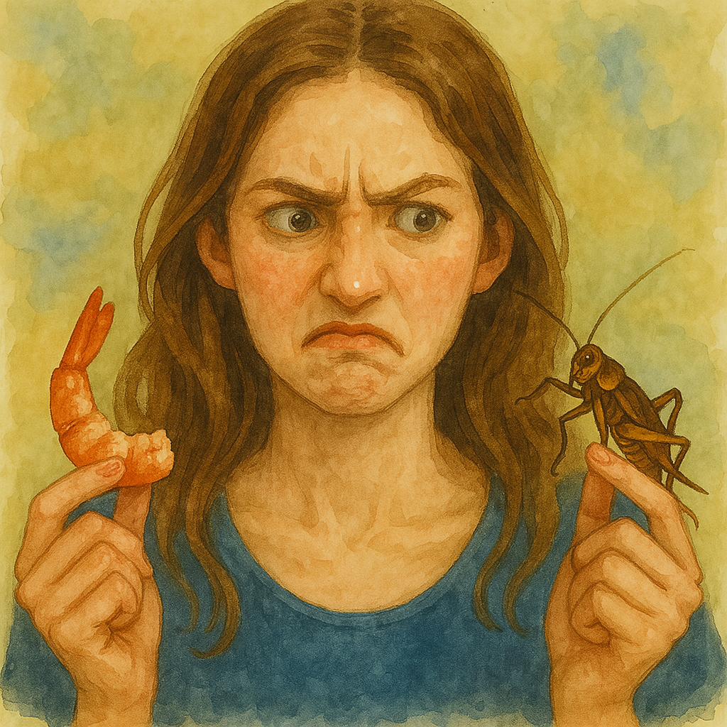 俺、エビのフライや天ぷらを尻尾まで食べちゃう(かっぱえびせんみたいな風味かな)けど、コオロギを食いたいとは思わないな