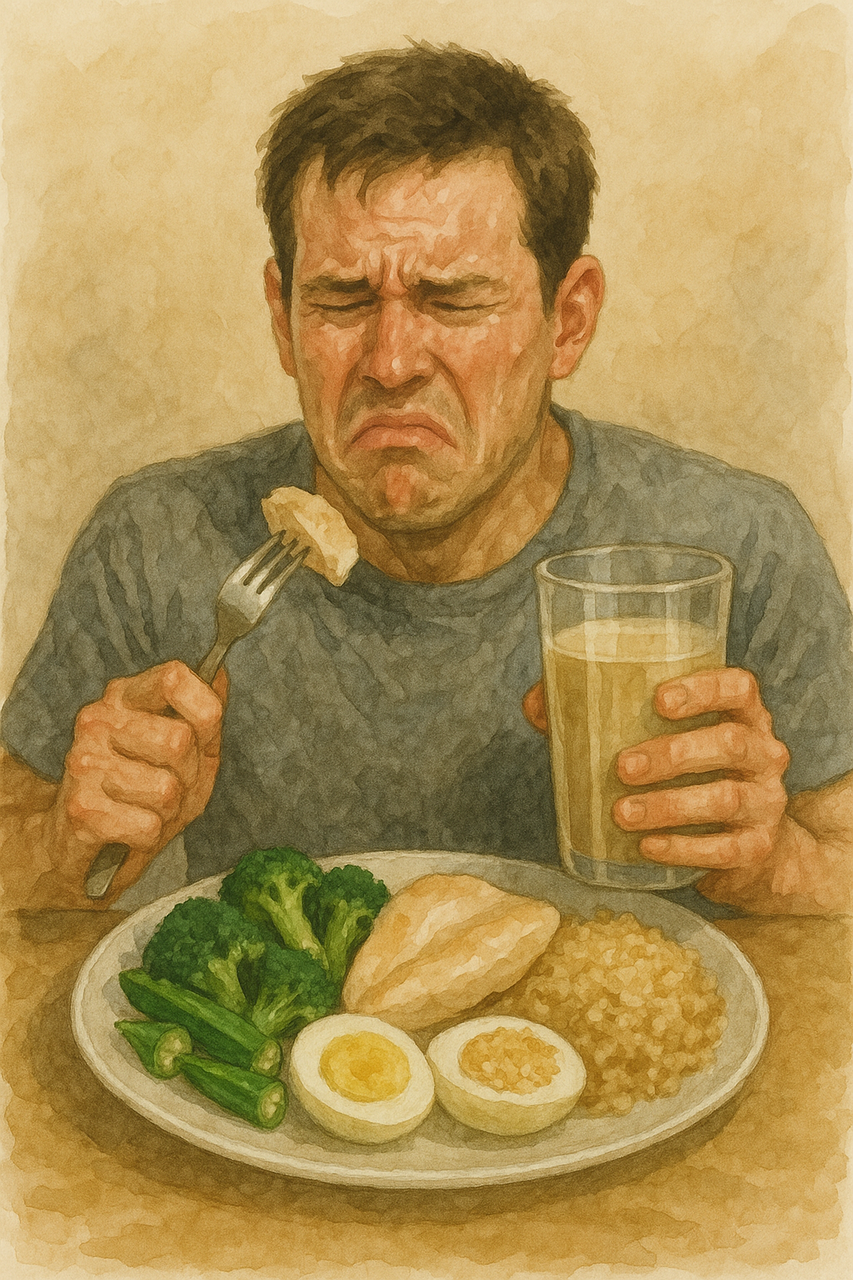 鶏むね肉、ブロッコリー、ゆで卵、オクラ、プロテイン、玄米