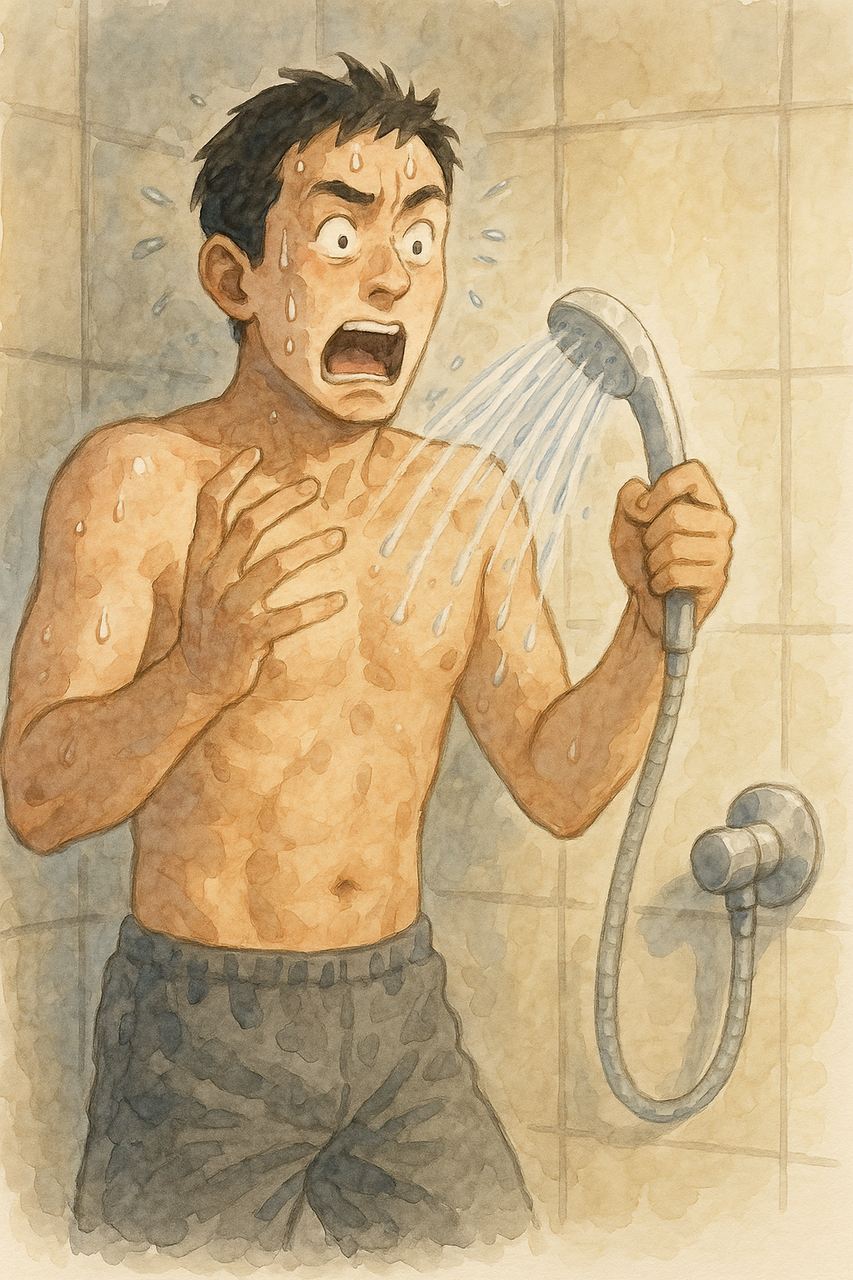 給水管内の水も熱いから、上手く水温調整できないんだろうね