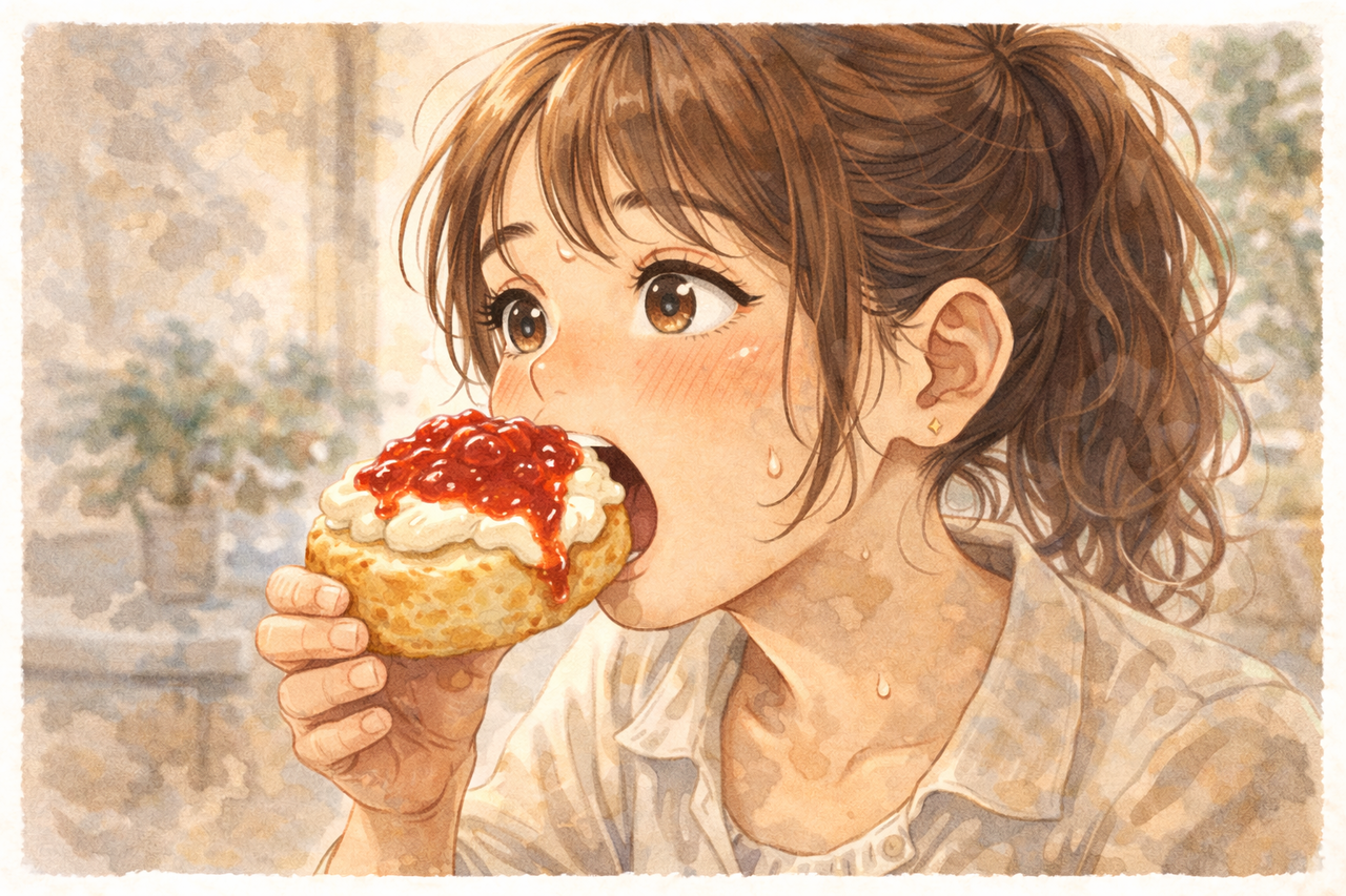 あれはクリームとジャムを乗せて、たっぷり淹れたお茶を添えると美味しくなる食べ物なのです