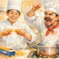 母ちゃんはご飯の手を止ないからどんどん広い背中になるんだな。